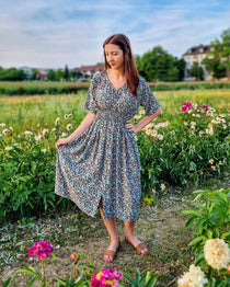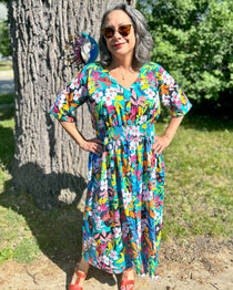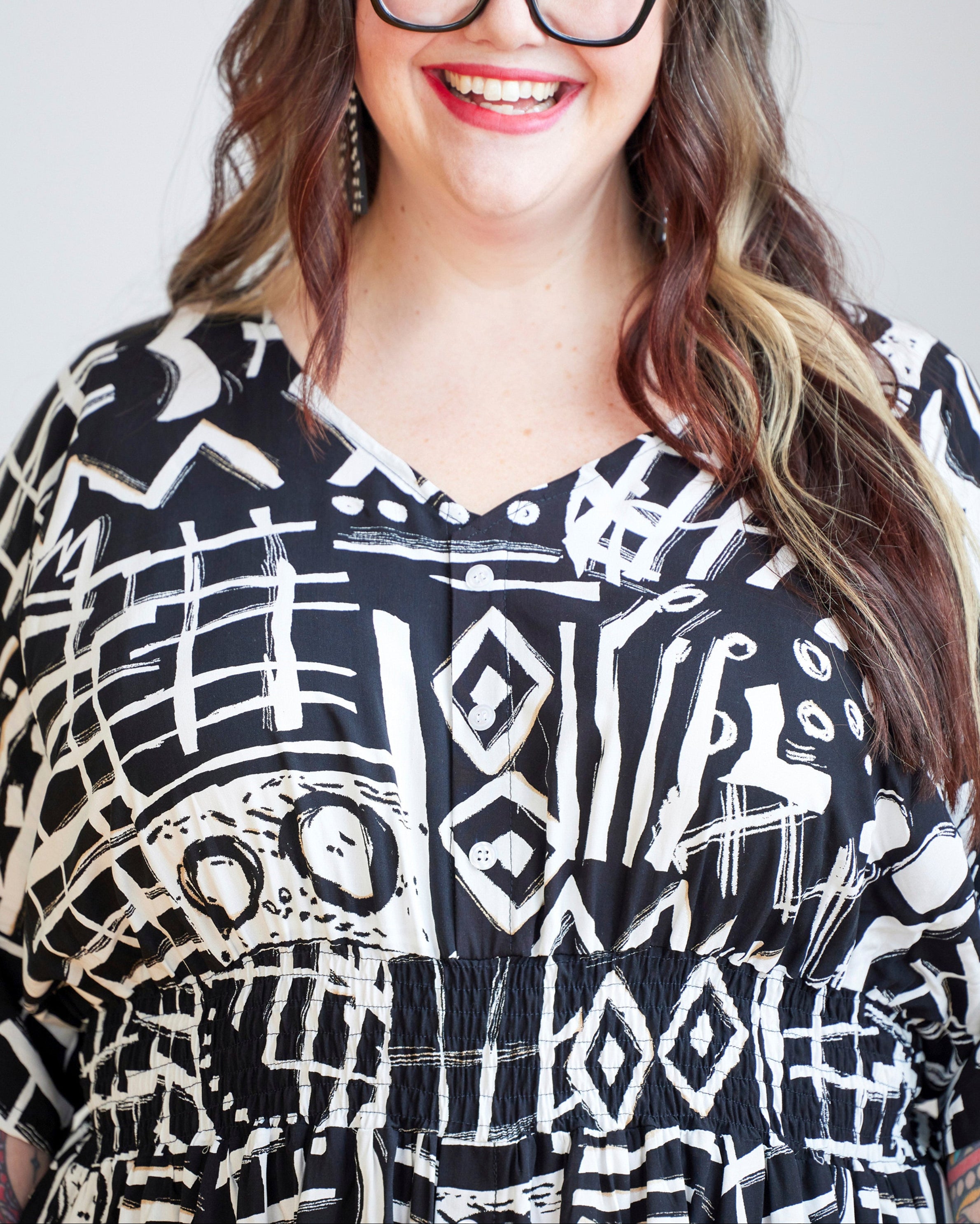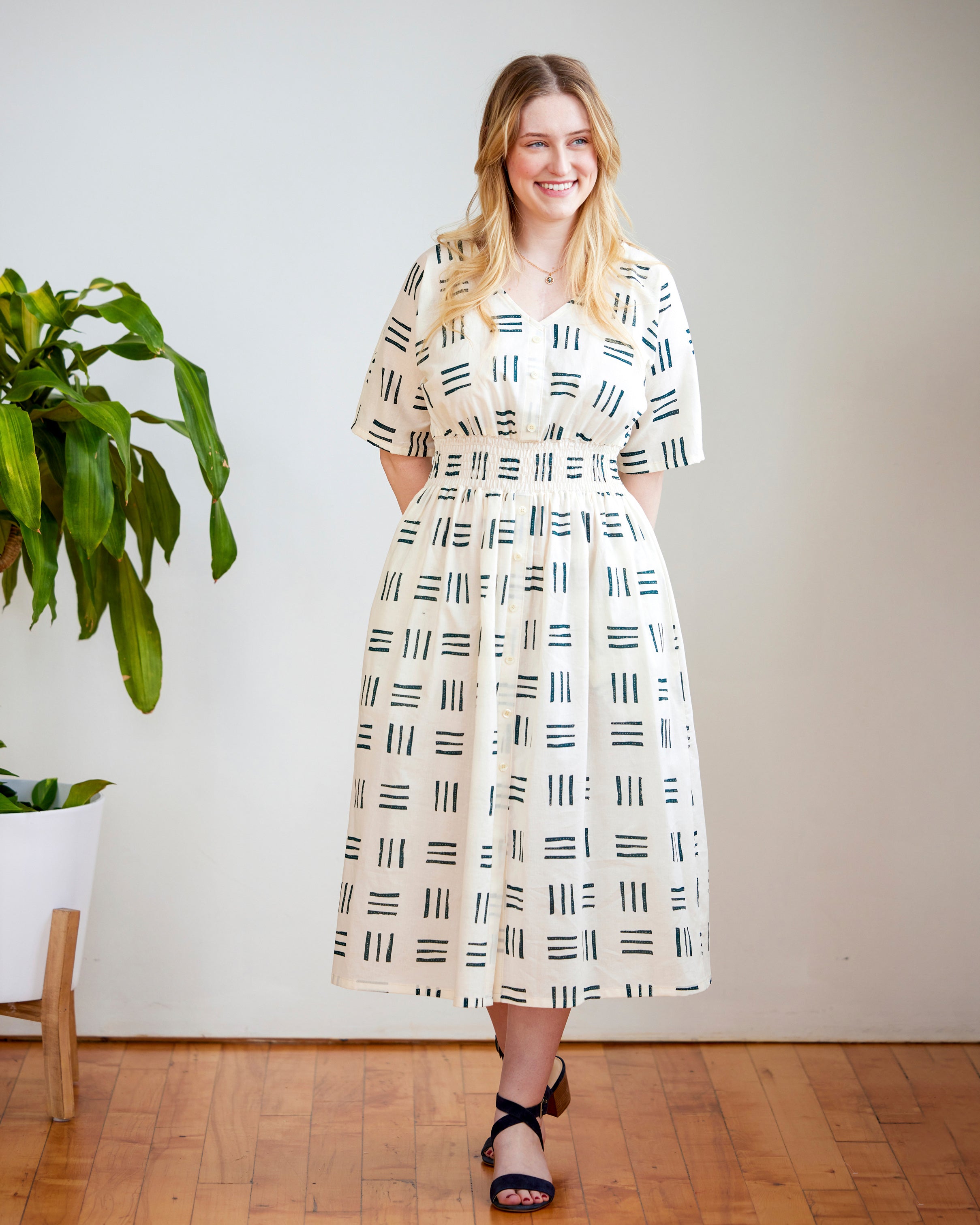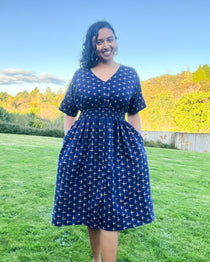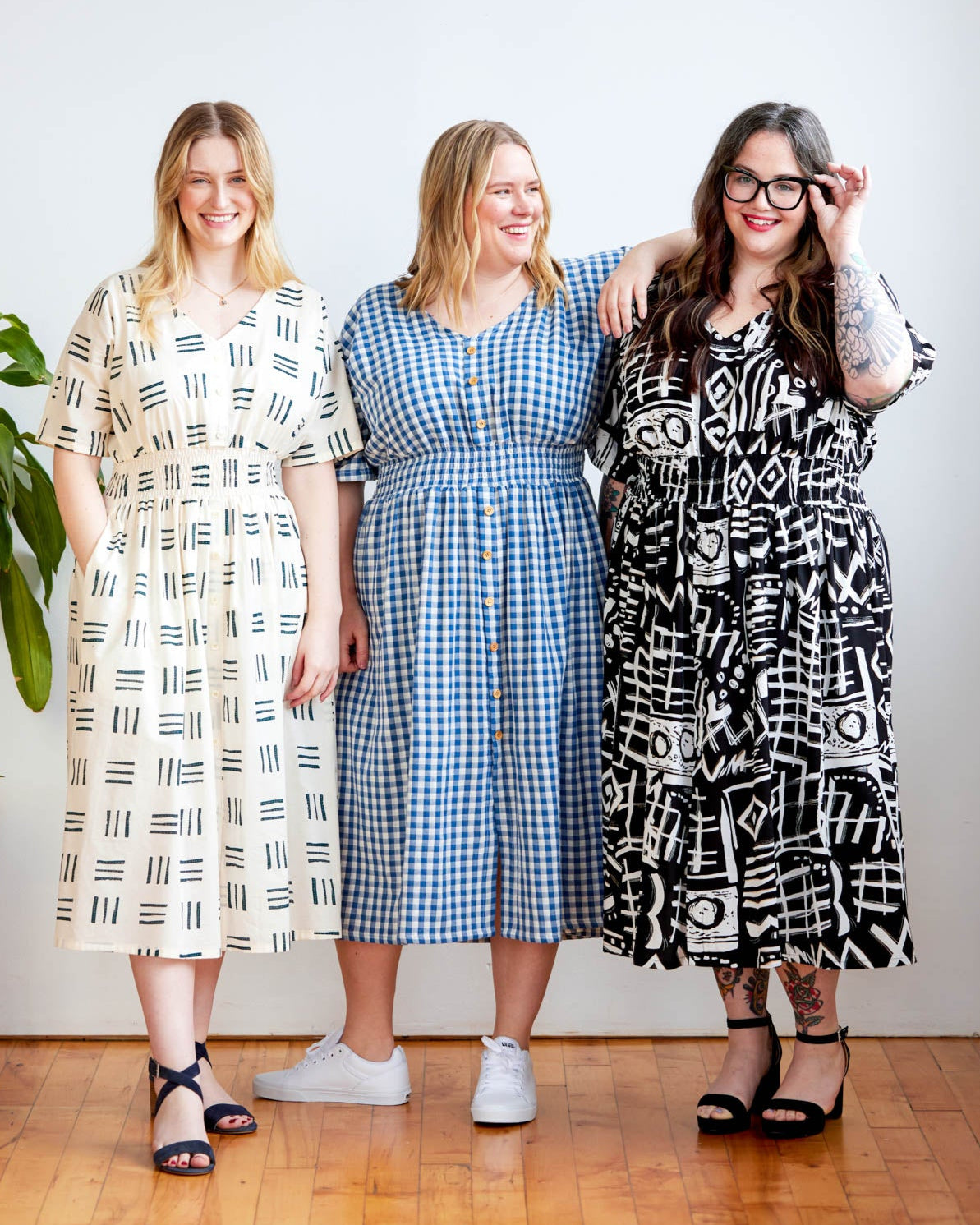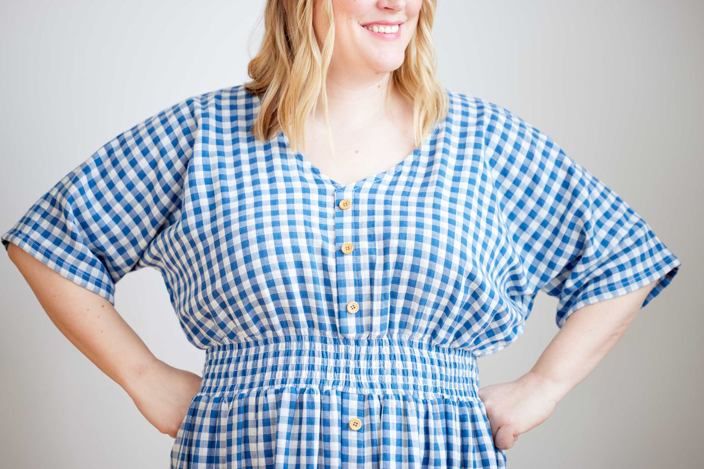**NOTE: The waist measurements shown are the stretched measurements. The shirring will reduce the waist measurement by approximately 20-25", so that the final waist measurement is slightly smaller than the body measurement.