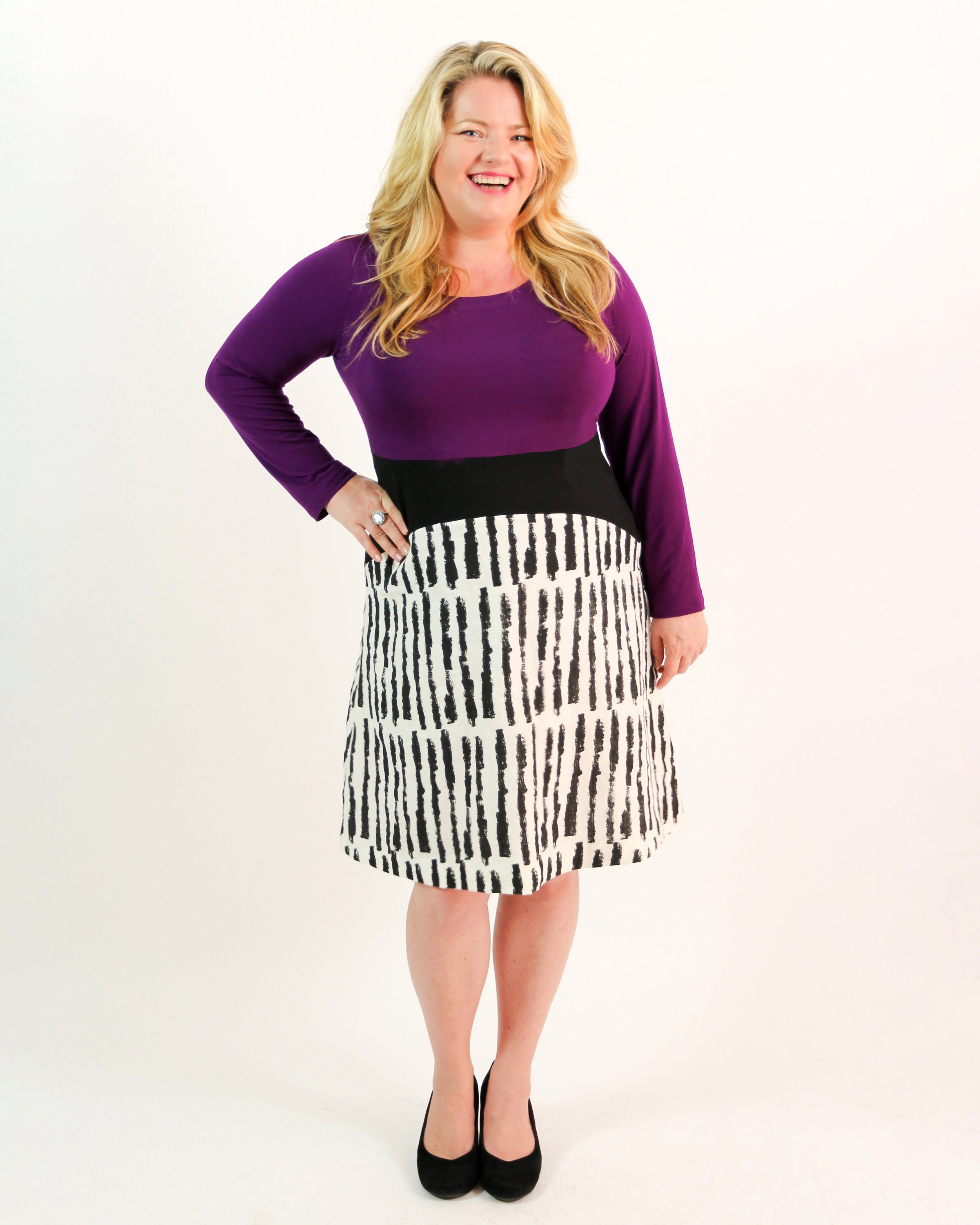 Hybrid woven and knit dress sewing pattern in cups C-H—get the comfort of a knit bodice with the possibilities of a woven skirt!