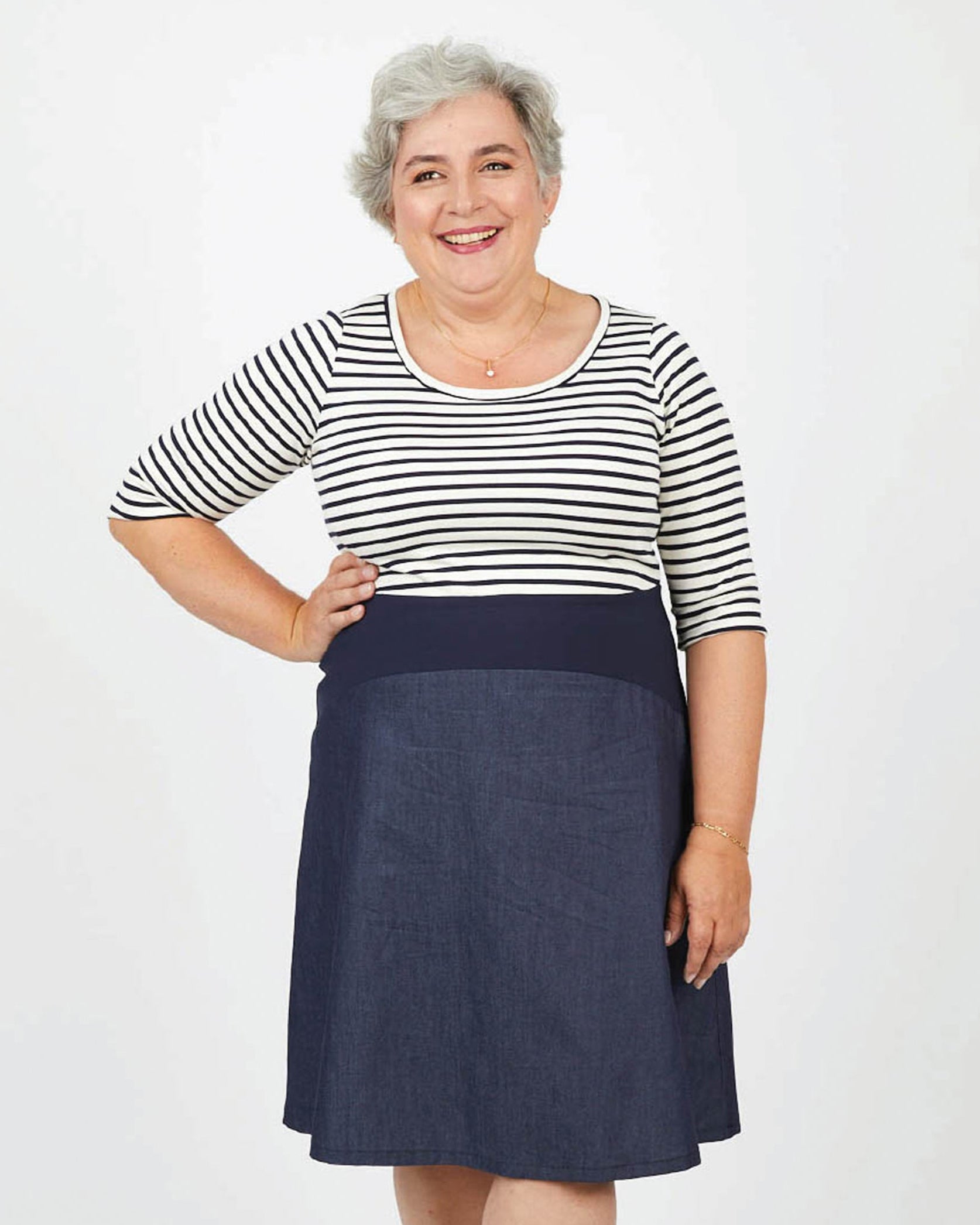 Mixing the comfort of a knit bodice with the fabric possibilities of a woven skirt, the Washington Dress gives you the freedom to play with colors and textures, for a look that’s uniquely you. Like all Cashmerette Patterns, the bodice comes in three cup sizes (C/D, E/F, and G/H), which makes fitting a cinch!