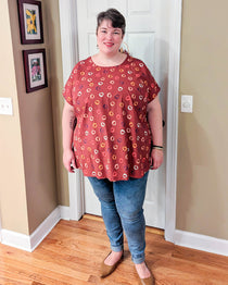 Our patterns are designed for curves in cup sizes C-H. If your cup size is larger proportionally to your shoulders than our G/H cup size, you will need to do a full bust adjustment. To calculate how much width you need to add to your pattern piece, divide the total FBA amount needed by two (as the pattern piece represents half the garment). How to do an FBA >