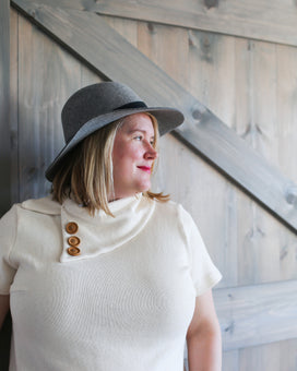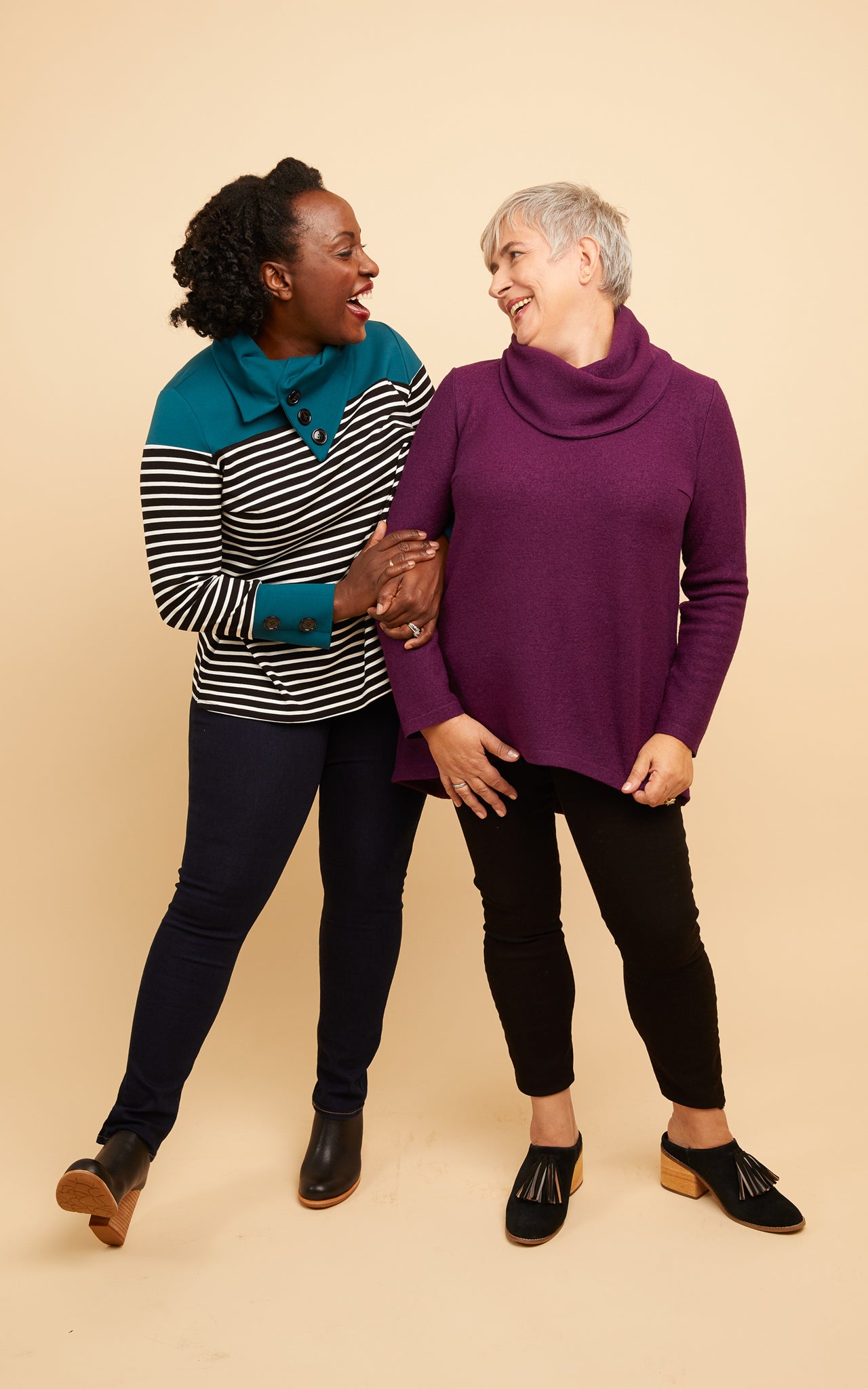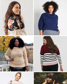 Cozy up with the Tobin Sweater! This modern sweater pattern is designed for curves with cup sizes from C–H and bodice darts so you can get a fantastic fit at the bust as well as the rest of your body.