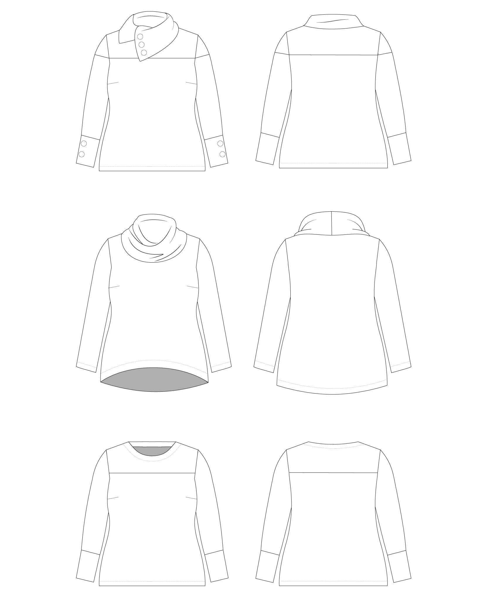 Experiment with all the options: View A features a split neck, chic color-blocking, and wide cuffs, View B has a cowl neck and swingy high-low hem, while View C is a classic sweatshirt. Whether made in a luxe sweater knit or soft French terry, the Tobin Sweater will keep you warm, comfortable and stylish all season long.