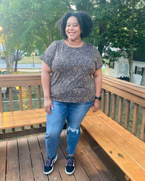 Curve-friendly t-shirt sewing pattern in cups C-H with fun puff gathered sleeve with elasticated wrists, or a classic straight t-shirt sleeve.