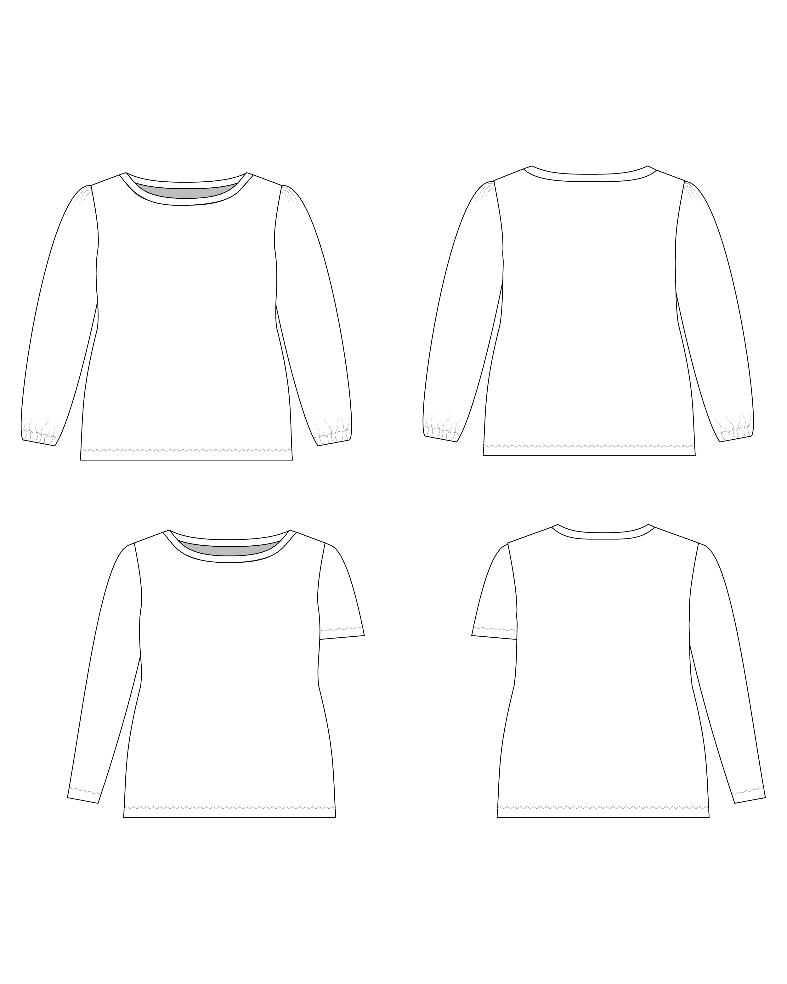 The Eustis is a curve-friendly t-shirt with elevated options! Make your Eustis with a puffy gathered sleeve and elasticated wrists, or create a more classic look with the straight sleeve in short or long lengths.