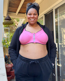 Designed by industry experts specifically for big boobs, this underwired sports bra delivers remarkable support in 120+ sizes from 28C to 54J. The front zip makes getting in and out easy, while two back options including a sporty cut-out design let you choose your own style.