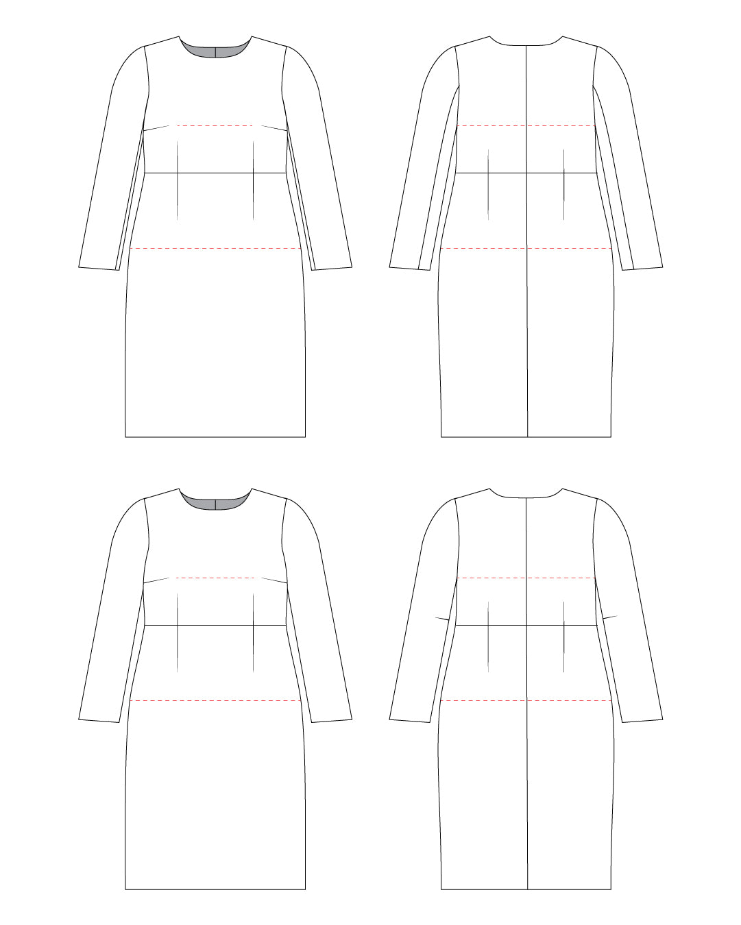 Create a well-fitting sloper with the Wyman Dress Sloper, your starting point for a whole wardrobe of possibilities! The Wyman pattern features a fitted darted bodice, fitted knee-length skirt, and two long sleeve options—a two-piece sleeve and a one-piece sleeve with an elbow dart—plus sloper-specific details like balance lines and a wide seam allowance to help you finesse your ideal fit.