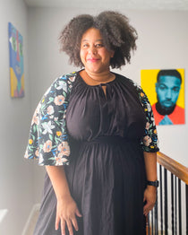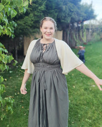Sew a vintage-style cover-up with the Caroll Shrug! The Caroll is inspired by the groundbreaking creations of fashion designer Claire McCardell in the late 1940s. The Caroll is a simple, bias cut cover-up that can be sewn in just about any fabric—woven or knit. This versatile pattern can be made in a single fabric or color blocked and can be made either lined or as a single layer. The Caroll is designed to pair with the Rockwell Dress, but looks fabulous over any dress or top.