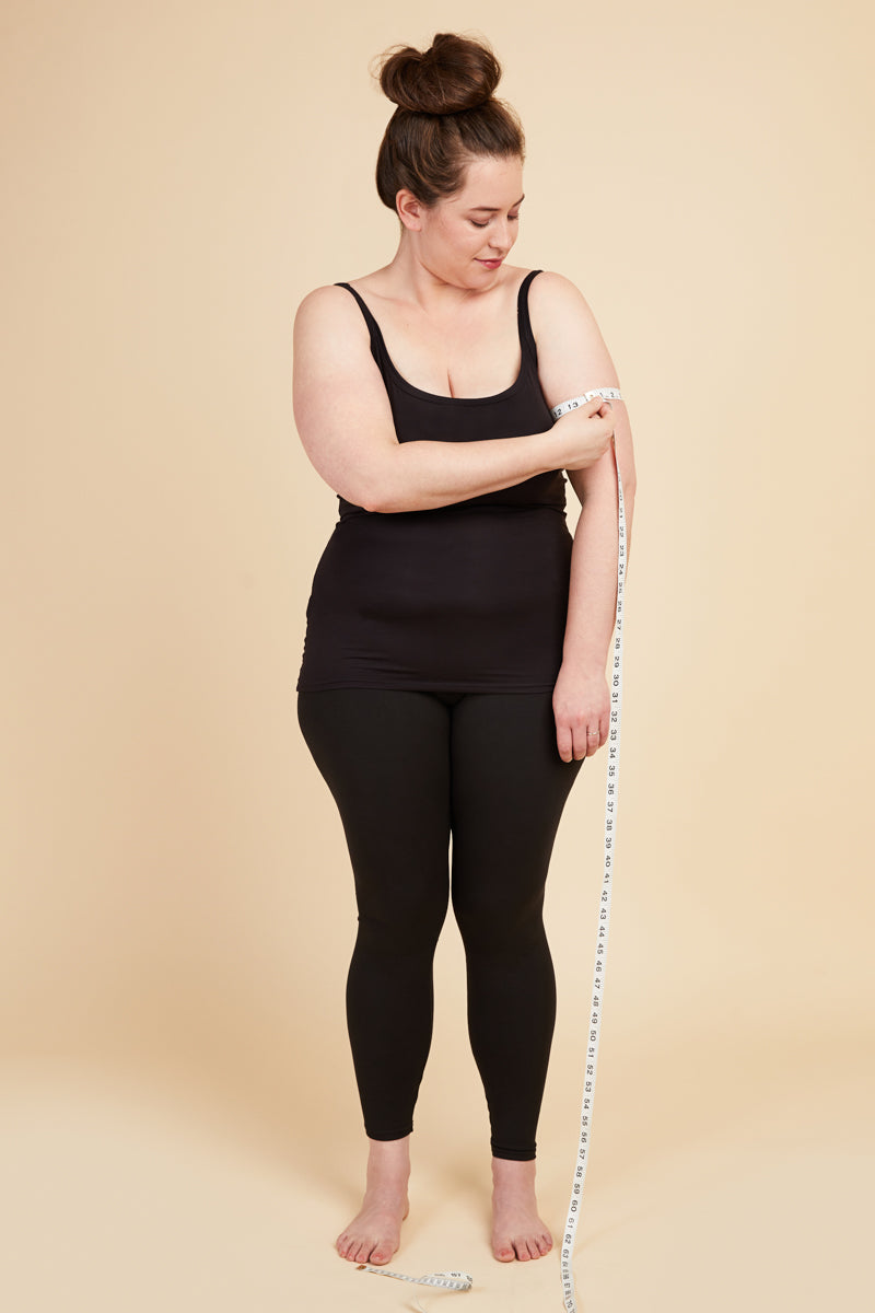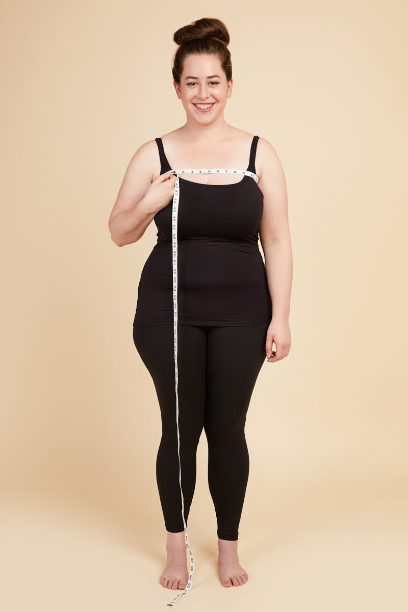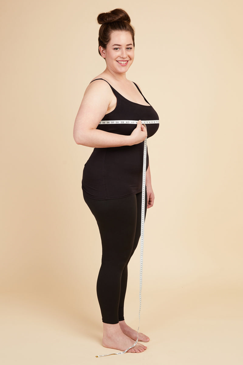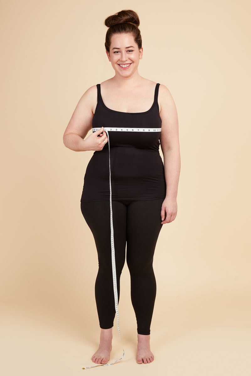 Take this measurement while wearing a bra, ideally the one you intend to wear with the garment you're making. Place the measuring tape around the fullest part of your bust. Keep your arms down when recording your full bust measurement.