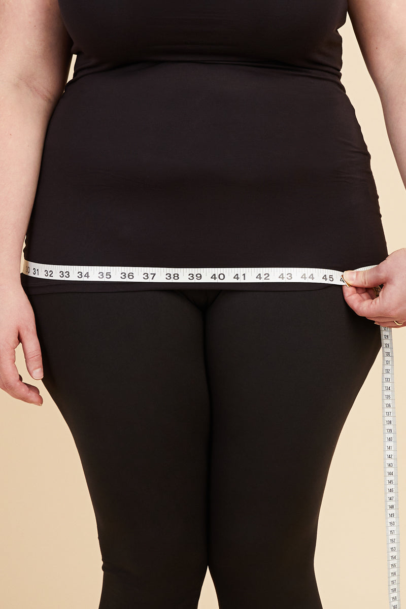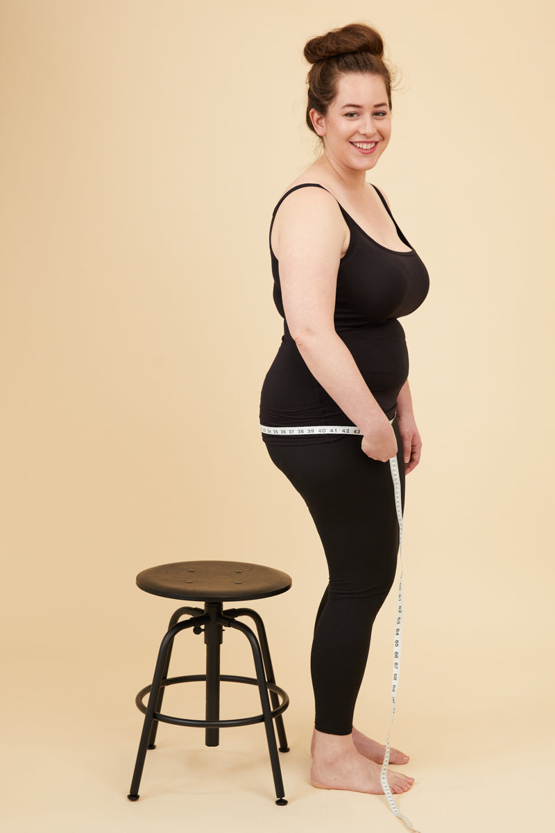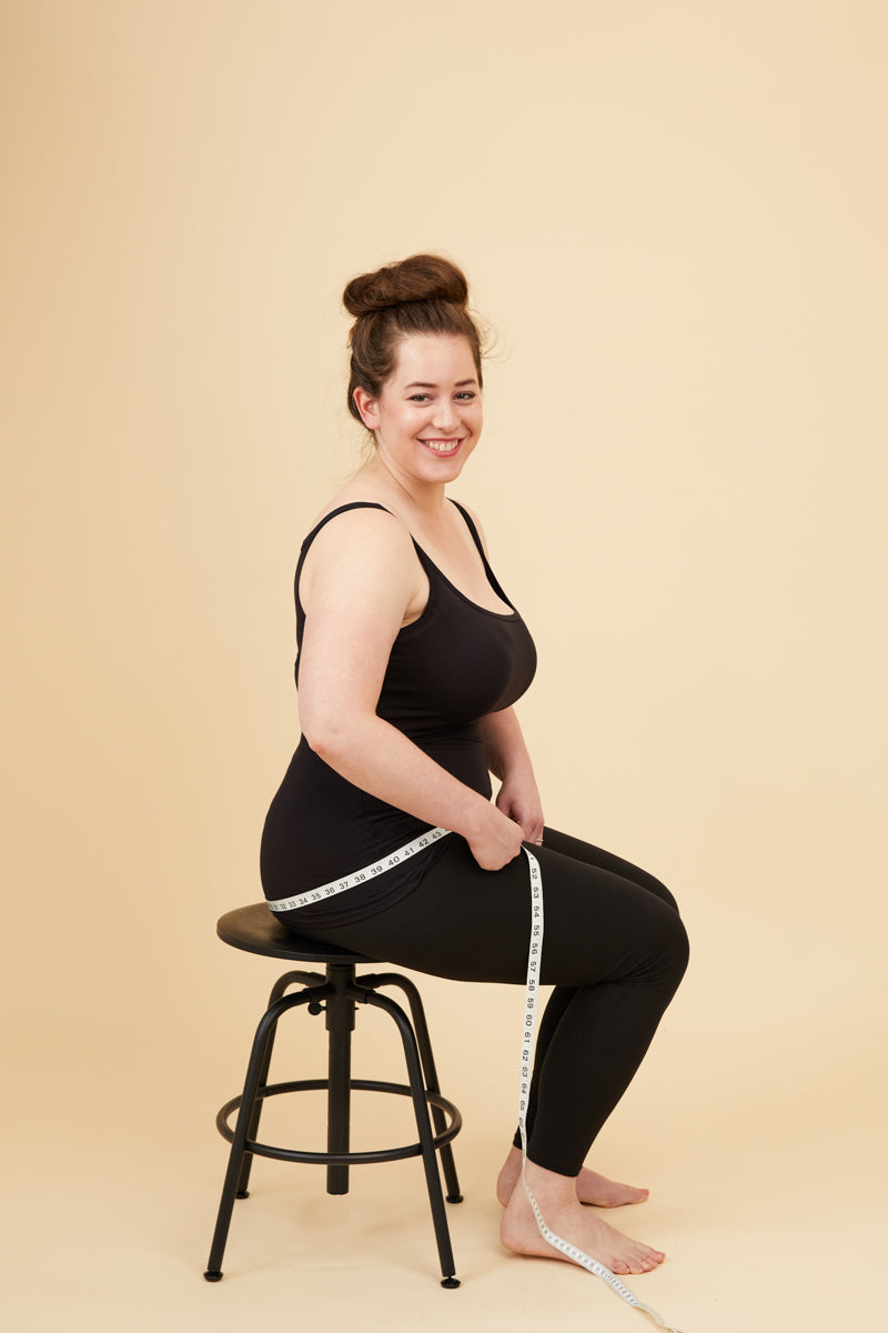 Place the measuring tape around the widest part of your hips. Use this hip measurement for garments that stretch or have a lot of ease (are flowy).