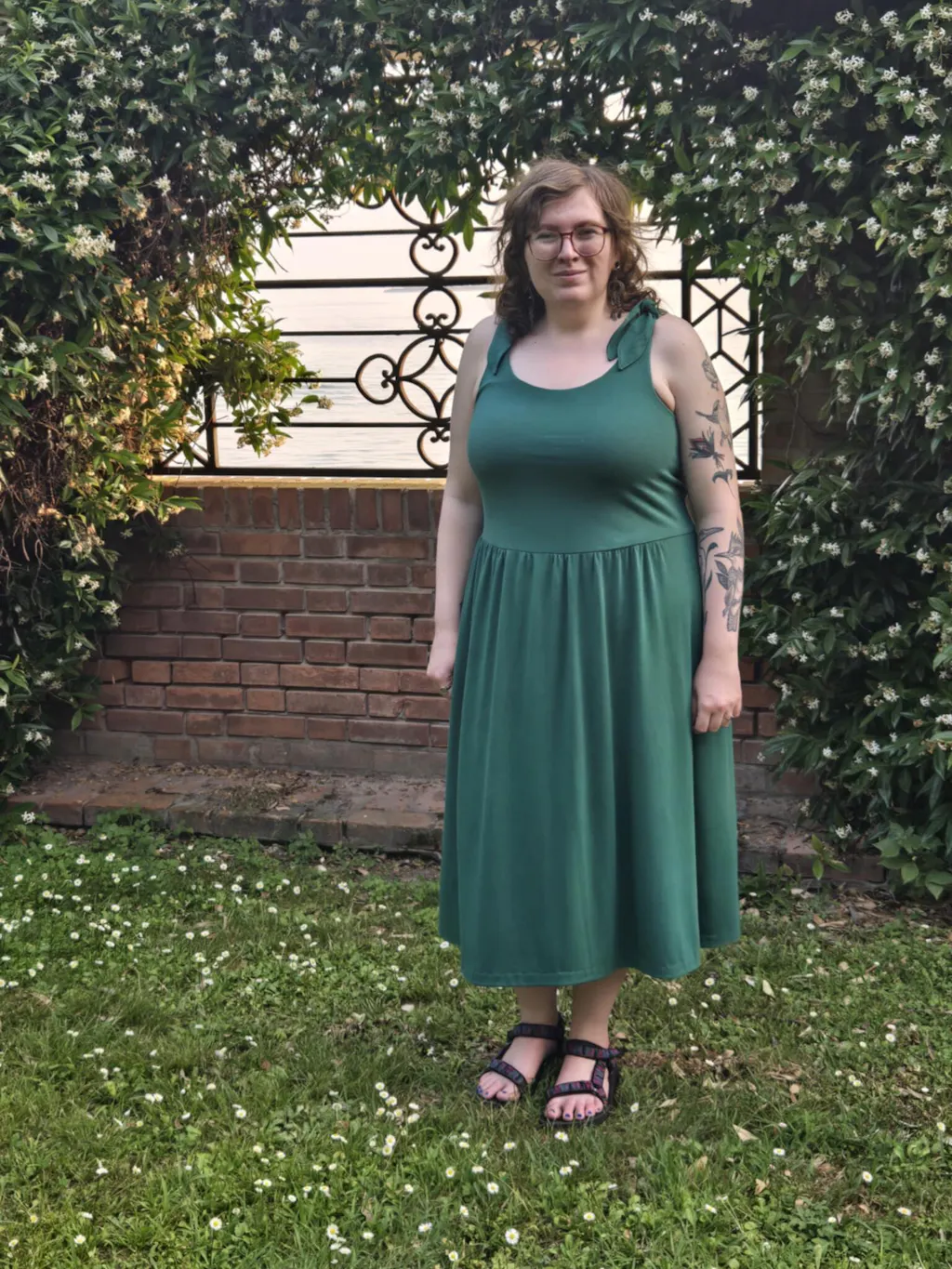 Our patterns are designed for curves in cup sizes C-H. If your cup size is smaller proportionally to your shoulders than our C/D cup size, you will need to do a small bust adjustment. To calculate how much width you need to remove from your pattern piece, divide the total SBA amount needed by two (as the pattern piece represents half the garment). How to do an SBA >