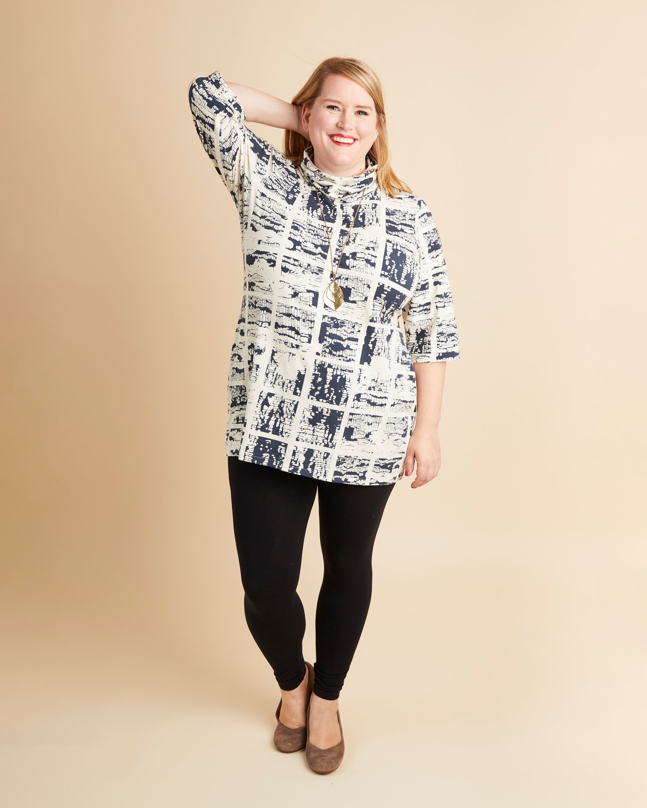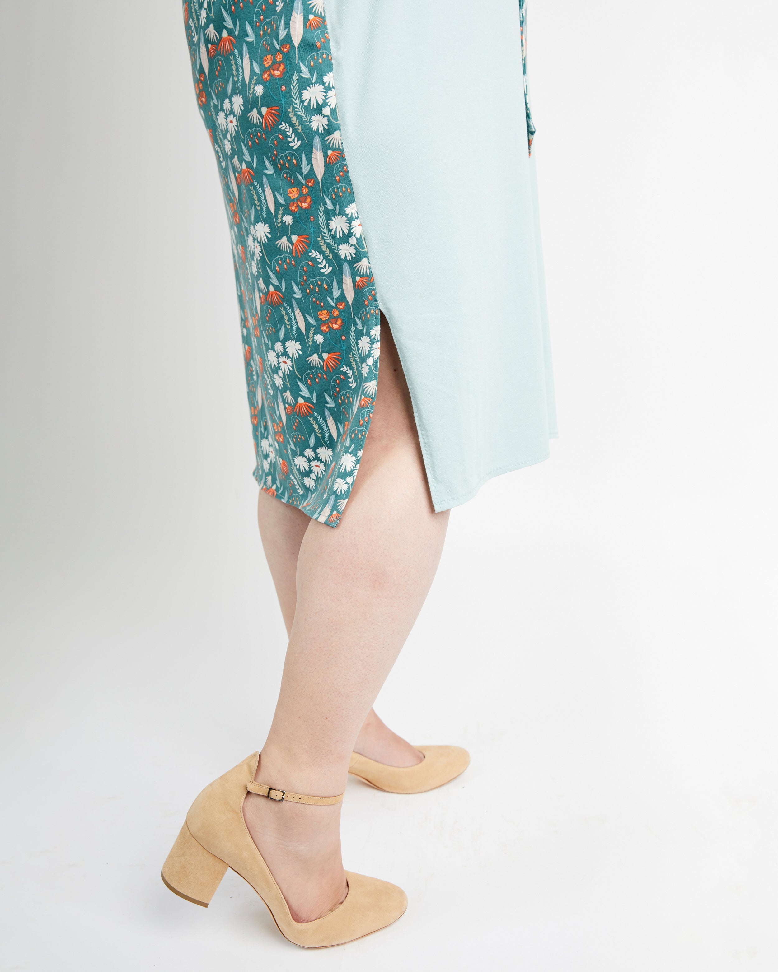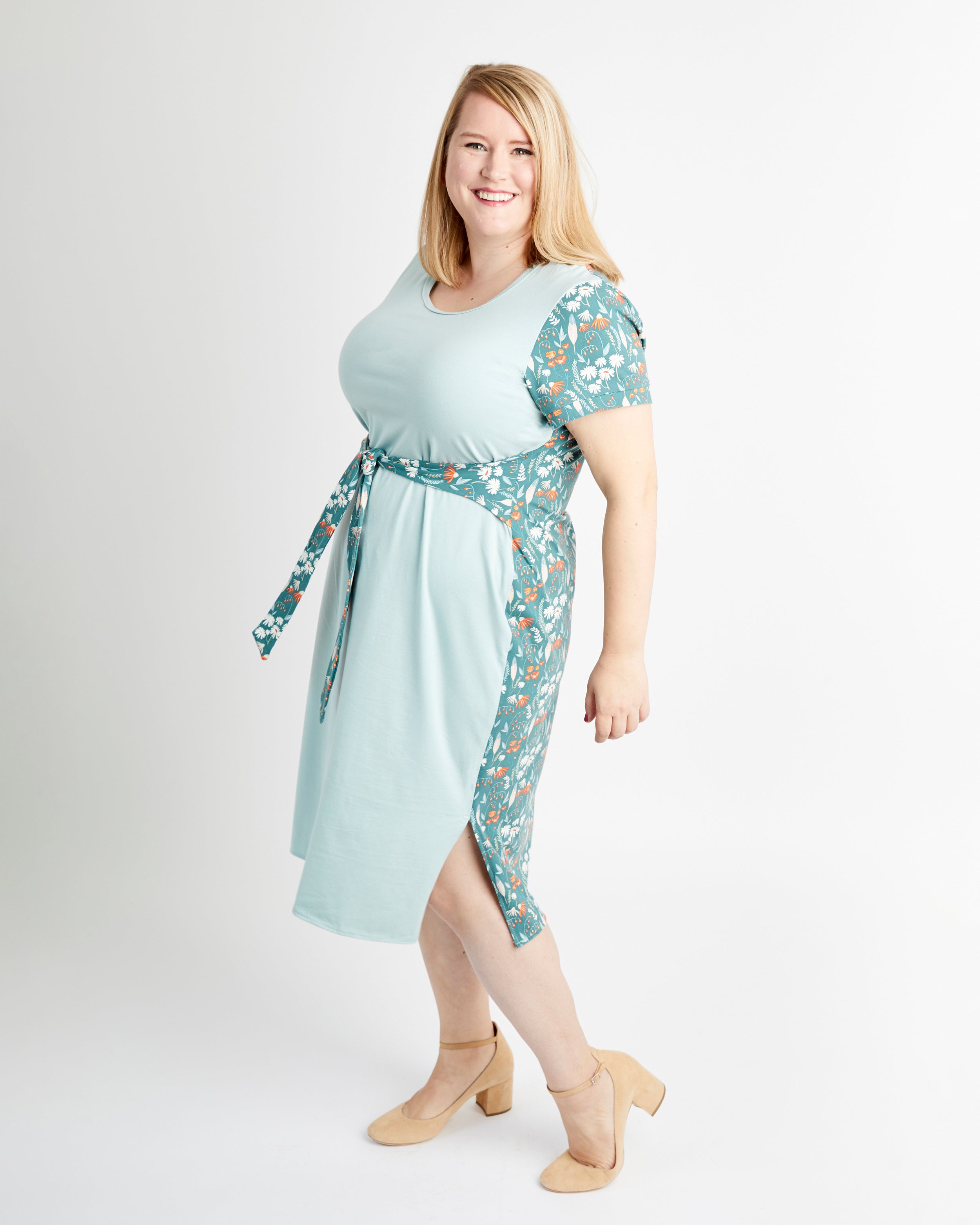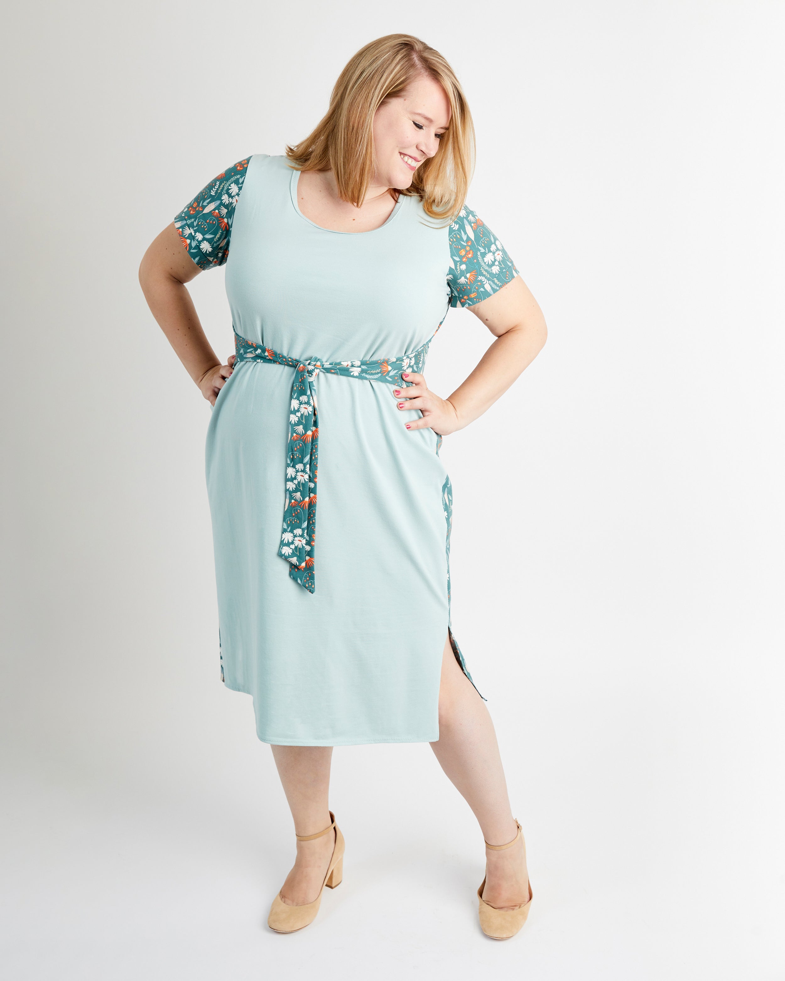 Take on your day with the Pembroke Dress & Tunic! This iconic T-shirt dress, is designed for curves, with cup sizes from C – H. Customize your own look, with midi or tunic lengths, a modern split hem detail, and an optional waist tie. Then choose from three neckline options (scoop, jewel, or turtleneck) and either cuffed or hemmed sleeves. Whether made up in a lightweight ponte or flirty floral jersey, there’s nothing basic about this curvy wardrobe essential!